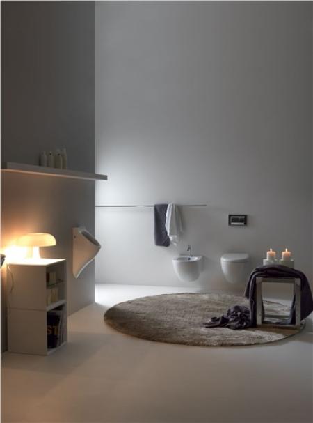Ванна изготовлена из Pietraluce, а остальные аксессуары для мебели изготовлены из высококачественной керамики с сертификатом качества "Сделано в Италии". Сантехника: биде и унитазы, предназначенные для экономии воды, Коллекция Aquatech включает в себя несколько моделей, таких как настенные унитазы и биде, светильники, расположенные заподлицо с полом, а также унитазы, расположенные рядом. Особенность настенной сантехники заключается в авангардном дизайне, в котором угол наклона неочевиден по сравнению с обычным дизайном, а сантехника сужается к стене и расширяется книзу спереди, как будто достигает пола. В результате достигается оптический эффект прямой кривизны.