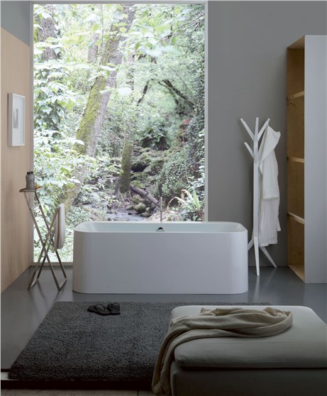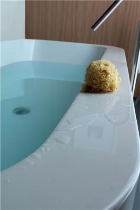 Внутренний бортик достаточно большой, чтобы разместить туалетные принадлежности или другие аксессуары для ванной комнаты, например, подставки для мыла. В ванне нет отверстий для установки на бортике, и в обязательном порядке требуется отдельно стоящий патрубок для смесителя для ванны и душа, что придает ей дополнительную элегантность.