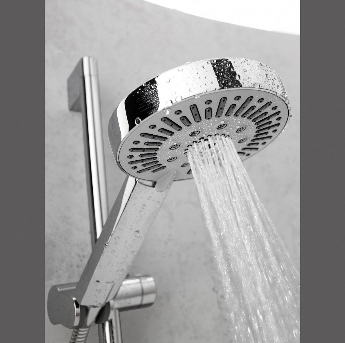 Душевая кабина с кронштейнами и насадкой для душа особенно проста в управлении и обеспечивает простое и неповторимое принятие душа. Прямоугольный дождевик с закругленными краями подчеркивает его чистый, органичный стиль.