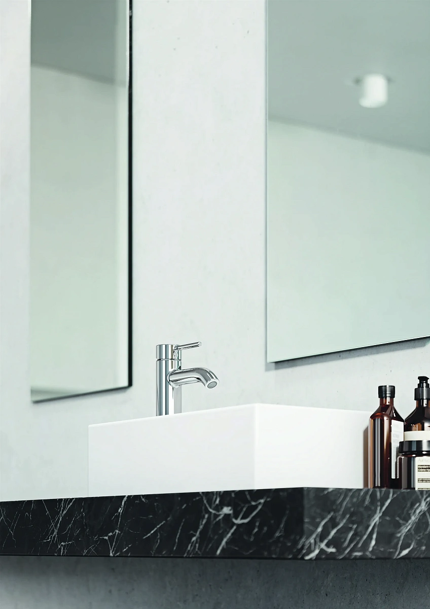 Фитинги с тремя различными высотами излива обеспечивают идеальное решение, где бы ни была установлена раковина.
