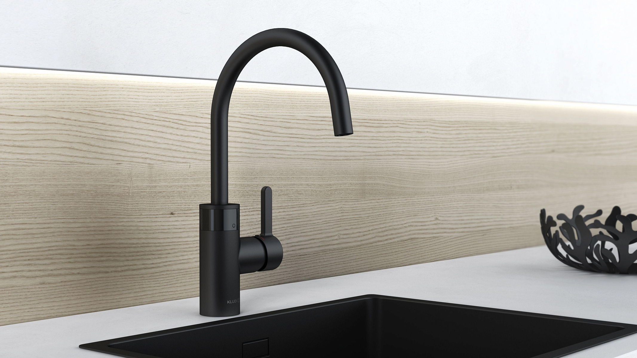 В линейке KLUDI впервые появилась новая поверхность с глубоким матовым черным покрытием (66). Благодаря этому глубокому черному цвету серия E-Go с C- и L-образными изливами идеально подходит для современной архитектуры в стиле минимализма.