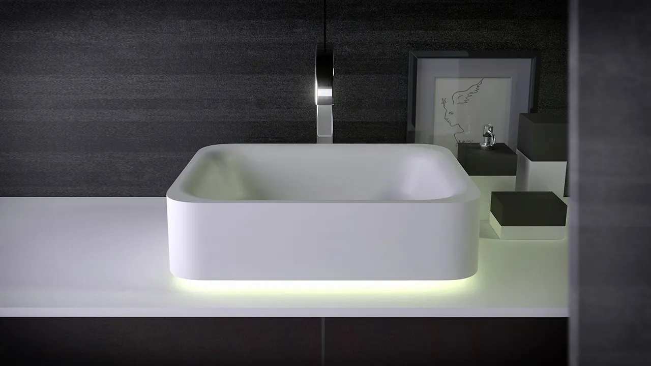 Раковина накладная Knief Shine 50х40х15 без перелива, без отв под смеситель с LED подсветкой, белый матовый 0600-043-01bi matt Раковина накладная Knief Shine 50х40х15 без перелива, без отв под смеситель с LED подсветкой, белый матовый 0600-043-01bi matt