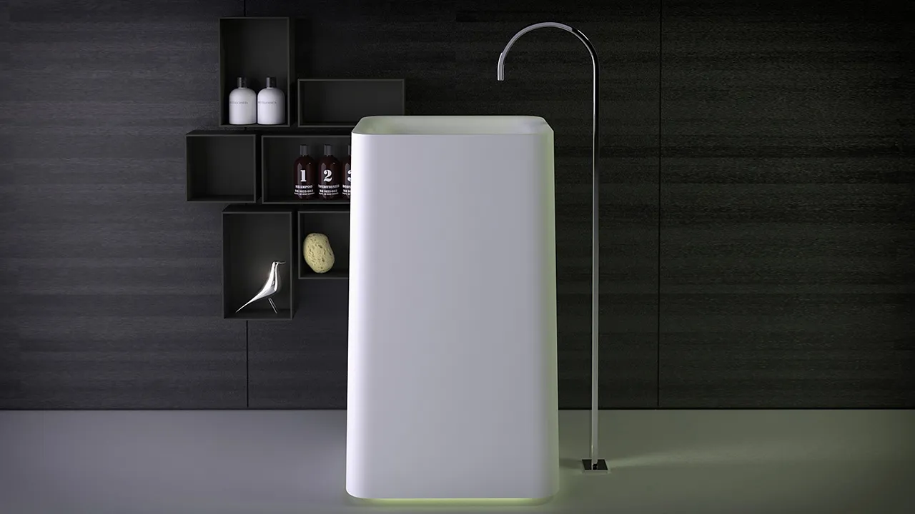 Раковина свободностоящая Knief Shine 53х43х90 с выпуском в пол, с LED подсветкой, белый матовый 0600-042-01 bi matt