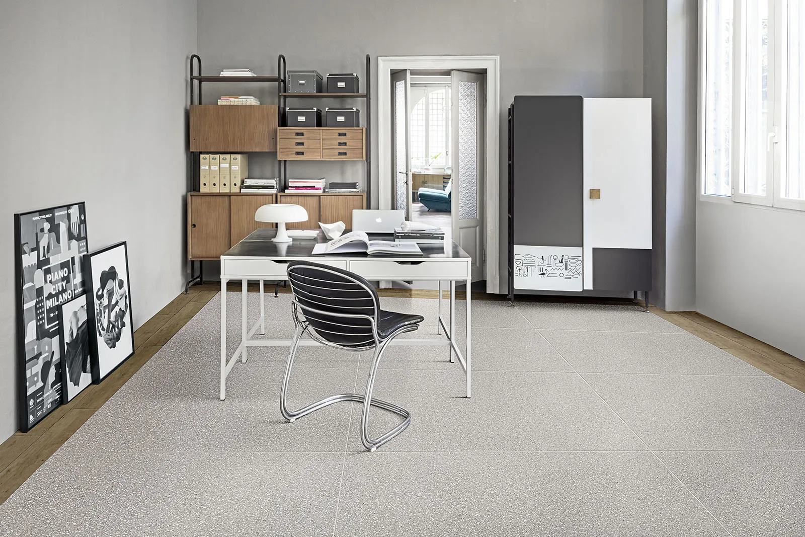 Коллекция Pinch от MARAZZI Italy точно передает детали, цвета и разнообразный рисунок, которые сделали полы венецианского семинато (или терраццо) уникальными. 5 цветов, от белого до черного, доступны в 2 вариантах, натуральном и люксовом, а также в большом размере 120х120 см.