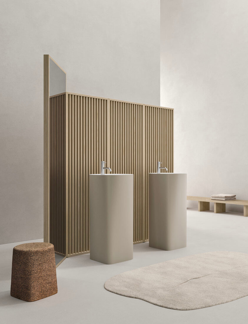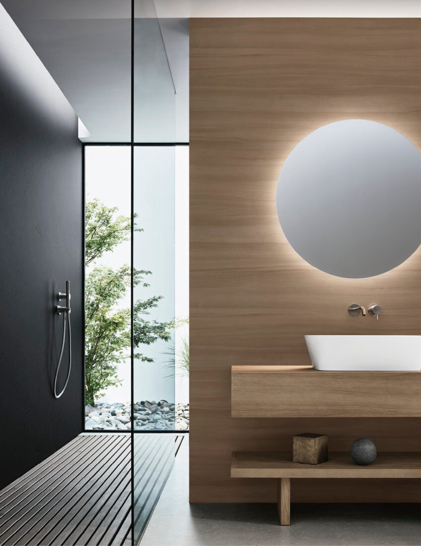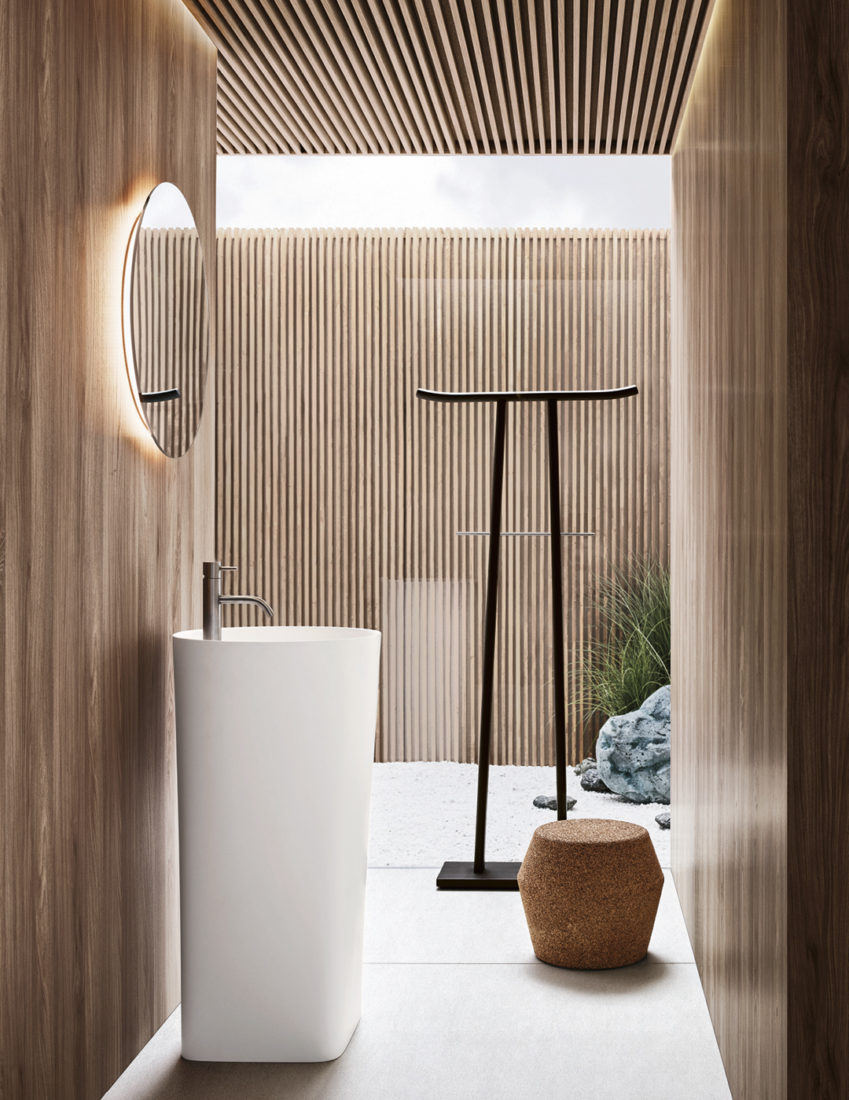 Решение, которое по-новому интерпретирует эстетику японской ванны, размер которой обладает особым очарованием, главным источником вдохновения для которой является природа.