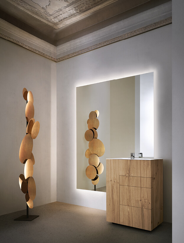 Предложение с современным уклоном, подчеркнутым сочетанием зеркал, оснащенных встроенной светодиодной подсветкой.