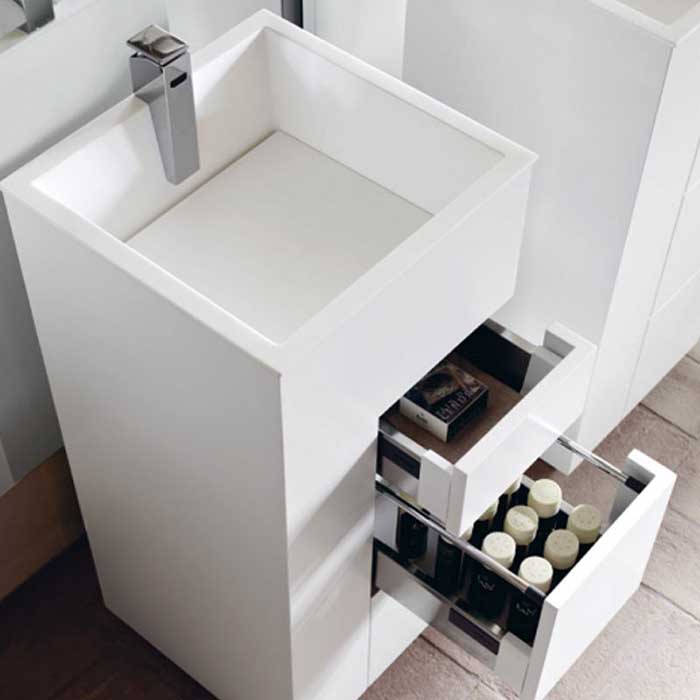 Тумба с раковиной Noorth Milldue Edition Touch 410х400х880, напольный, 3 ящика, слив в пол, раковина Milltek белая матовая, отделка Bianco матовый, 2914.2.41
