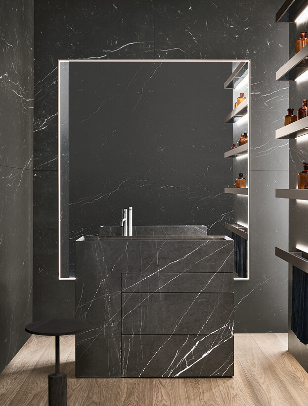 Коллекция Touch от Milldue доступна в широком ассортименте отделок: от мрамора до лака, дерева и глины.