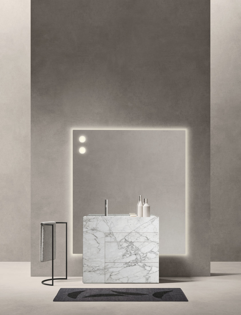 Монолитная раковина с минималистской эстетикой, способная придать индивидуальность даже небольшим помещениям.