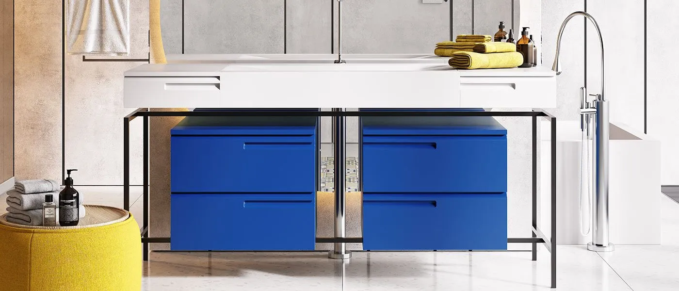 Коллекция ARIA PLUS позволяет максимально эффективно использовать каждый элемент, вставленный в металлическую несущую конструкцию, будь то двери, выдвижные ящики, открытые отделения или пустые пространства между одним элементом и другим.