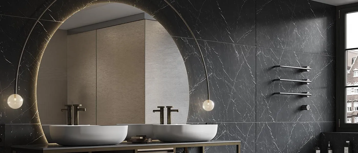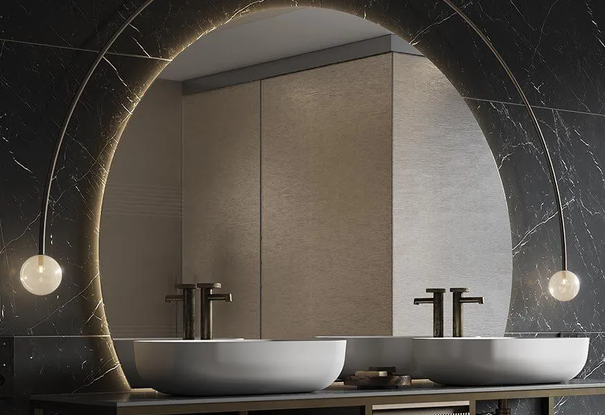 Это простые тонкие зеркала полукруглой формы, подходящие для горизонтальной или вертикальной установки. Эти зеркала, также доступные со светодиодной подсветкой, отличаются своей универсальностью: версия MIRR HALF MOON может одним движением украсить неиспользуемый уголок, в то время как версия MIRR MOON особенно подходит для придания стильности и элегантности нашей мебели или столешницам для умывальников, изящно расположенным на верхних столешницах.