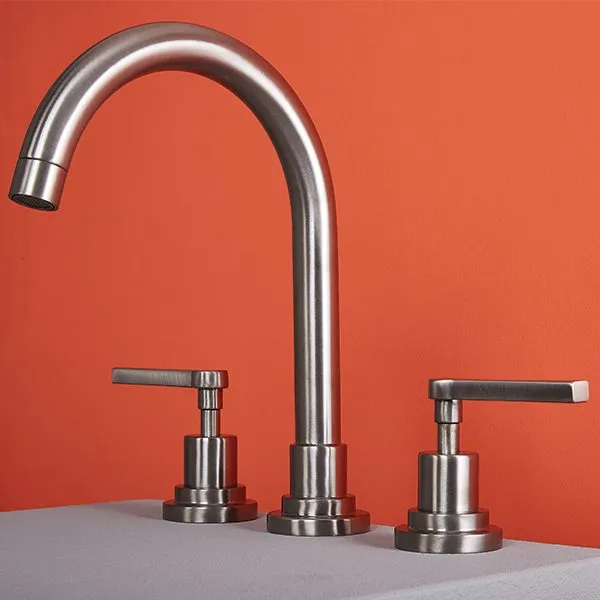 Коллекция Mac Kinley 05 от Nicolazzi — это определенно «современные» линейные формы с закругленными углами, адаптированные к типичной конфигурации «смесителя для раковины с тремя отверстиями».