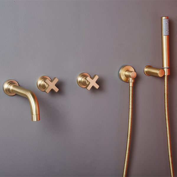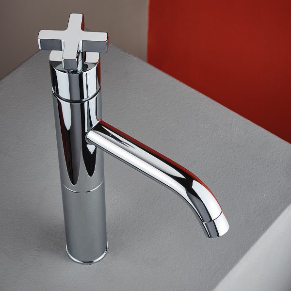 Крестообразные ручки характерны для этого стиля и позволяют использовать его как в современных, так и в классических ванных комнатах.