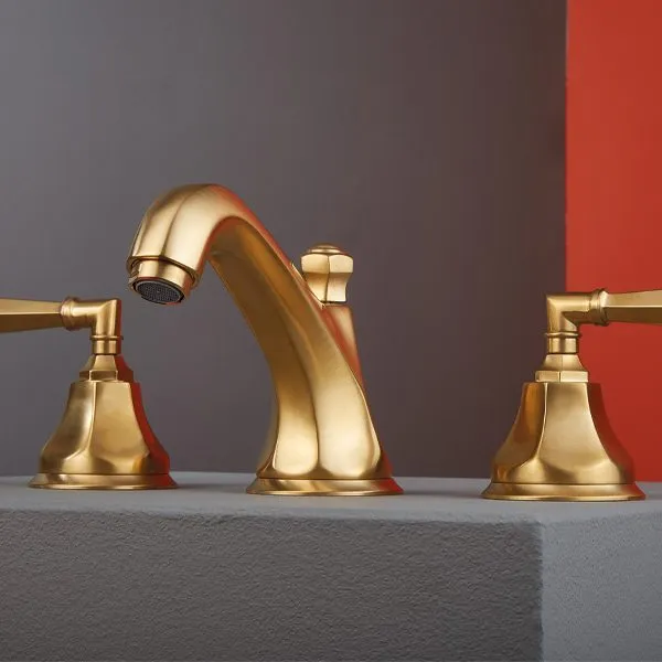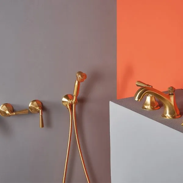 Строгие шестиугольные формы идеально сочетаются с классическим и современным стилем. Для этой линейки доступны девять различных рычагов и ручек: от металлических до украшенных кристаллами Swarovski, от керамики с золотым декором до цельного гранита, что позволяет удовлетворить потребности всех клиентов.