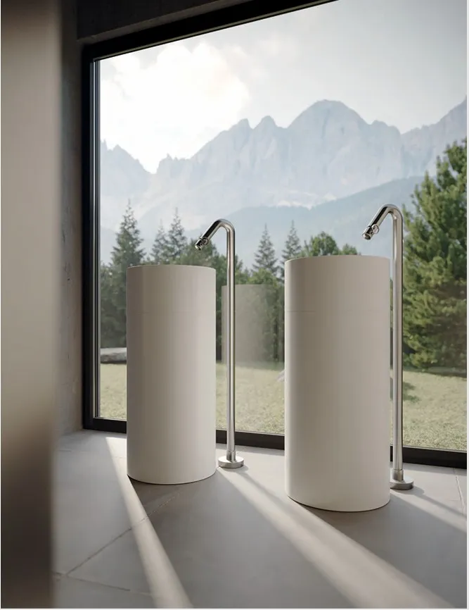 Помимо традиционного варианта предлагаются модели для раковины, с тремя отверстиями, настенные (однорычажные или с тремя отверстиями), напольные и потолочные: для потолочного варианта на заказ можно изготовить индивидуальное удлинение, отвечающее различным требованиям каждого архитектурного проекта.