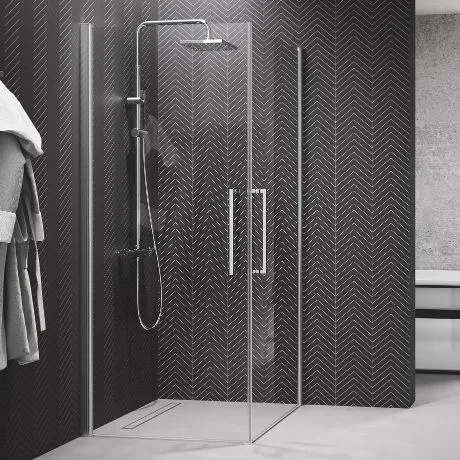 Стенки для душа максимально используют пространство благодаря тонкой раме и большому количеству стекла.