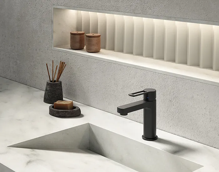 Сочетание квадратной и круглой форм создает уникальный стиль коллекции Ringo - West от Paffoni, что делает их идеальными для любого стиля дизайна и мебели.
