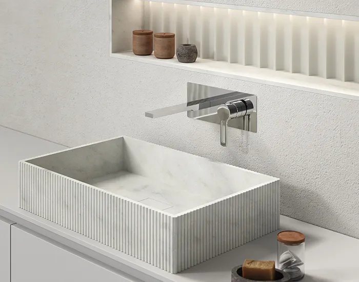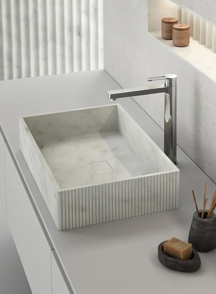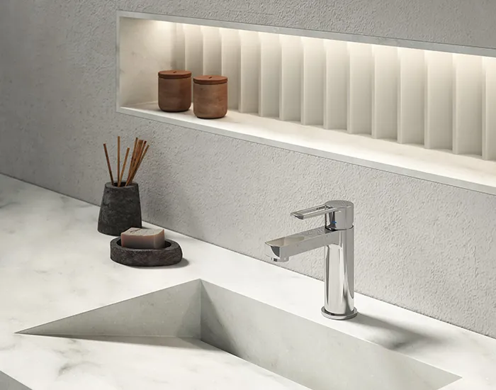 Для обеих версий смеситель для умывальника доступен в трех вариантах высоты (стандартный, средний и удлиненный), и даже со стандартным картриджем, а затем с энергосберегающим картриджем, благодаря которому вы можете добиться значительной экономии энергии, поскольку открытие ручки в переднем положении позволяет подавать холодную воду, в то время как для получения горячей воды требуется требуется повернуть ручку влево.