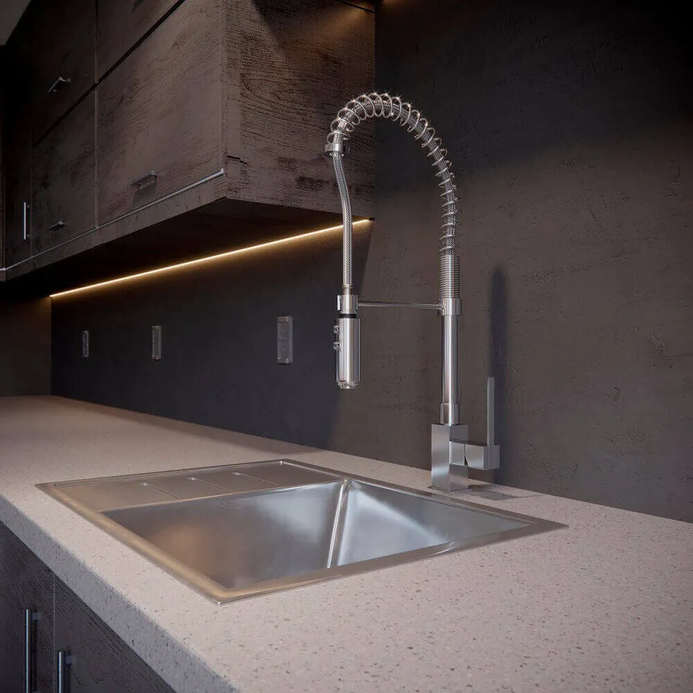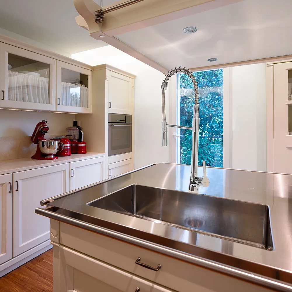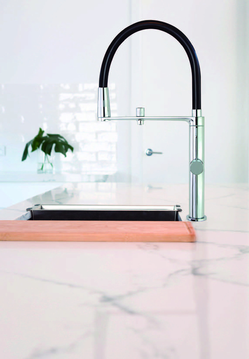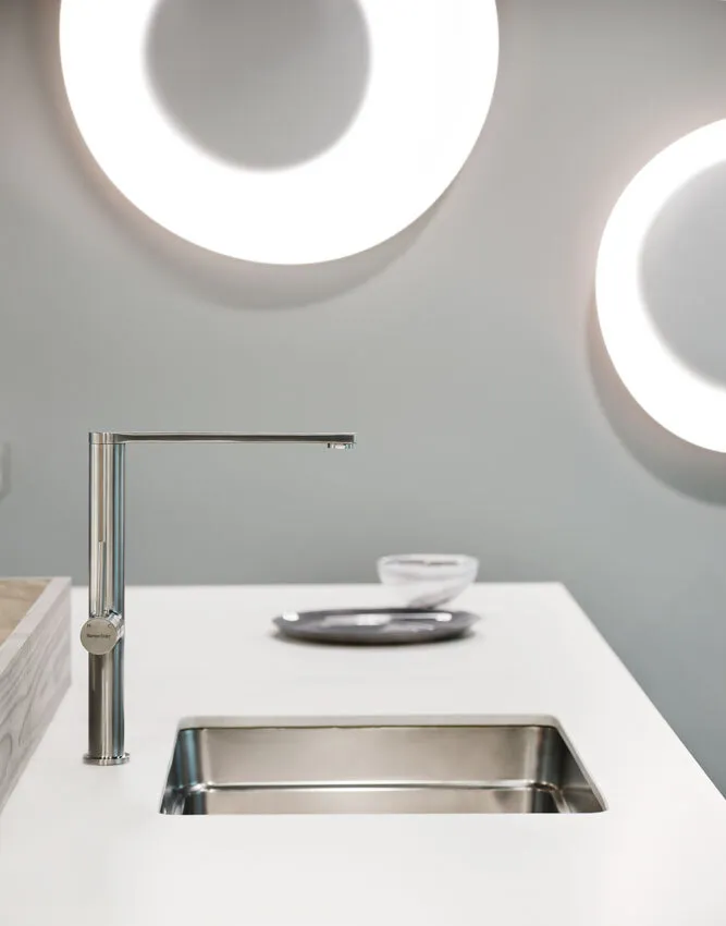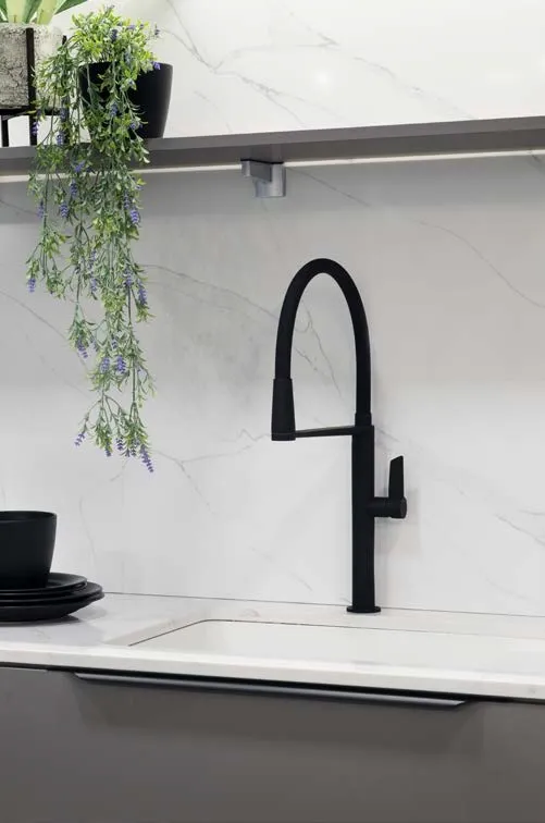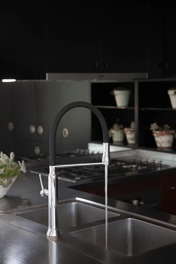 Коллекция идеально подходит для кухонь премиум-класса и обеспечивает максимальный комфорт: удобный выдвижной душ, высокий поворотный излив и эргономичное управление делают работу на кухне быстрой и комфортной.