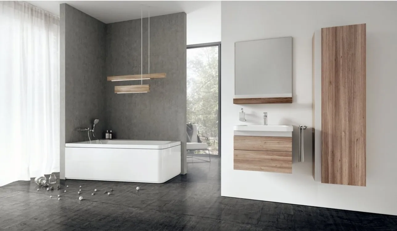 Ванна предлагает больше пространства для хранения аксессуаров, шампуней и обеспечивает установку душевой кабины, позволяющую встать и повернуться в полный рост. Поверните или наклоните на 10 ° угловую раковину для создания необычного асимметричного душевого угла. Для поклонников классических форм концепция предлагает прямоугольную ванну, квадратный душевой угол, прямоугольную душевую кабину и прямоугольный умывальник.