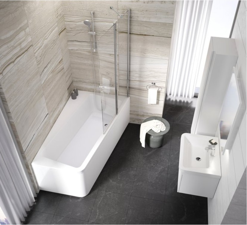 Ванна предлагает больше пространства для хранения аксессуаров, шампуней и обеспечивает установку душевой кабины, позволяющую встать и повернуться в полный рост. Поверните или наклоните на 10 ° угловую раковину для создания необычного асимметричного душевого угла. Для поклонников классических форм концепция предлагает прямоугольную ванну, квадратный душевой угол, прямоугольную душевую кабину и прямоугольный умывальник.