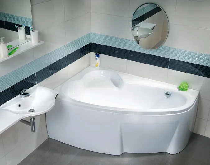 Расположение чаши ванны Asymmetric под углом относительно стены ванной комнаты позволяет получить большую длину внутреннего пространства, нежели при размещении параллельно стене.