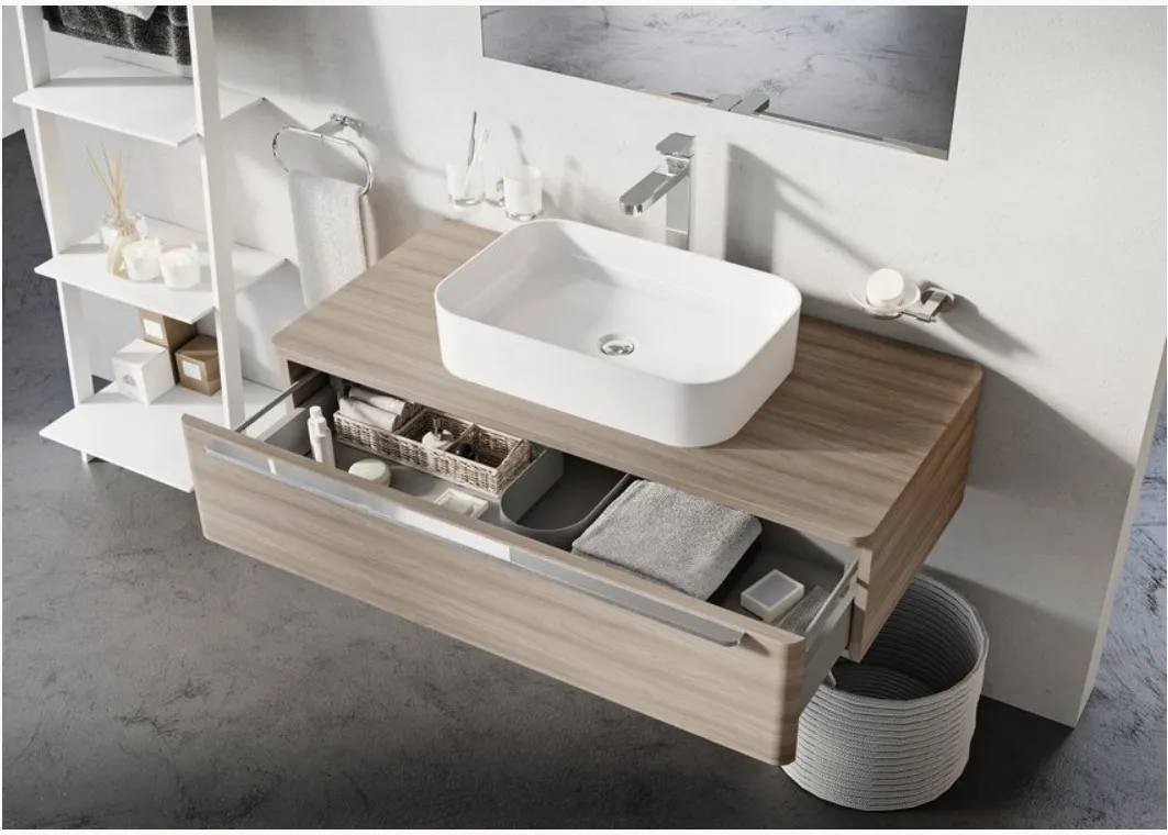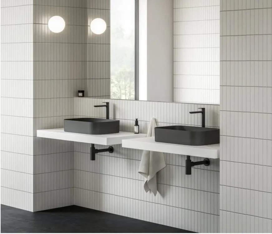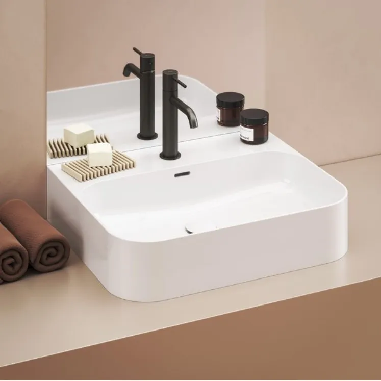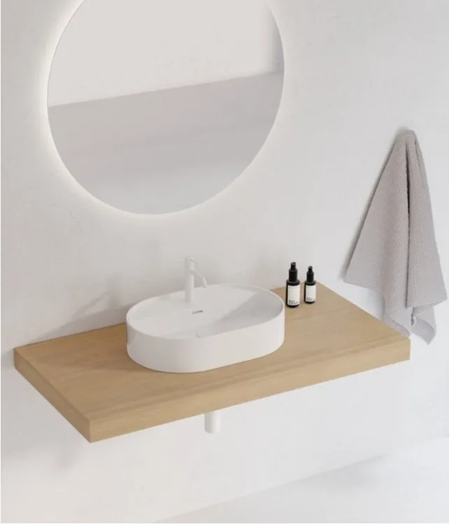 Привлекательное сочетание нежности, долговечности и свободы выбора размещения умывальника и смесителя на столешнице.