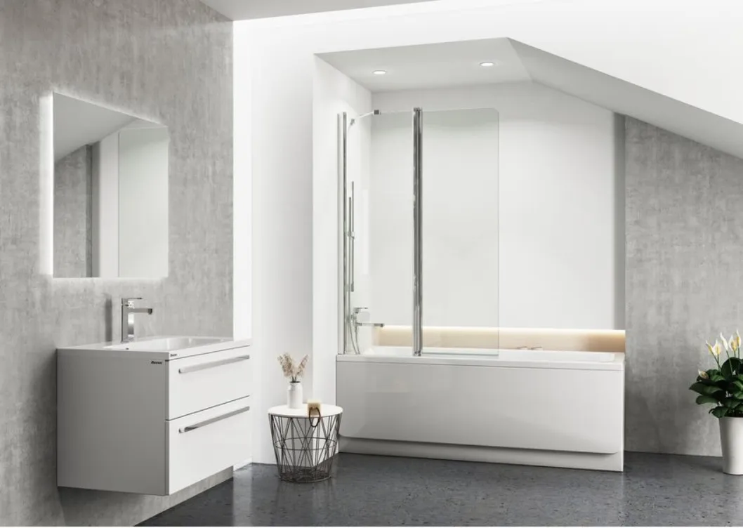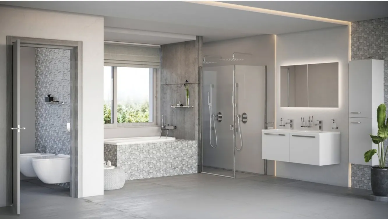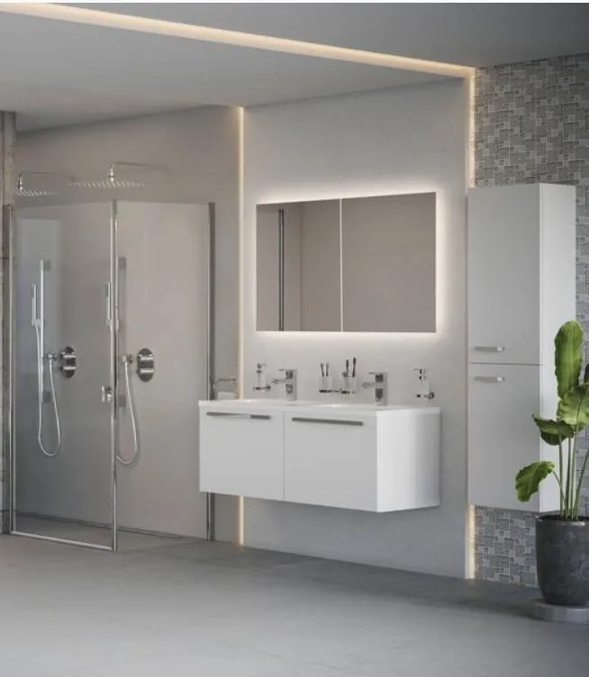 Направленный наружу светодиодный свет равномерно освещает интерьер ванной комнаты и придает ей уютную атмосферу. Подсветка не слепит глаза, но идеально подходит для повседневного использования.