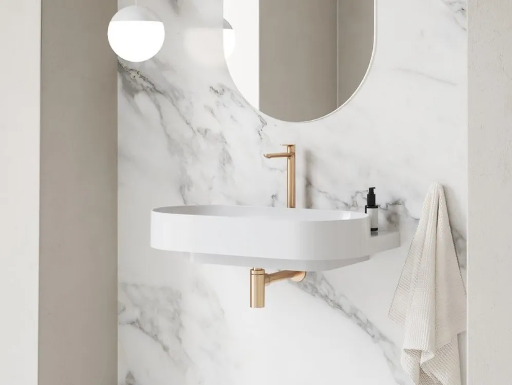 Все, что вам нужно, находится в пределах досягаемости, но умело спрятано за краем умывальника. Щетки, диспенсеры и другие мелкие предметы так легко прячутся и не нарушают эстетического впечатления от ванной комнаты. Кроме того, эти предметы никогда не упадут в умывальник.