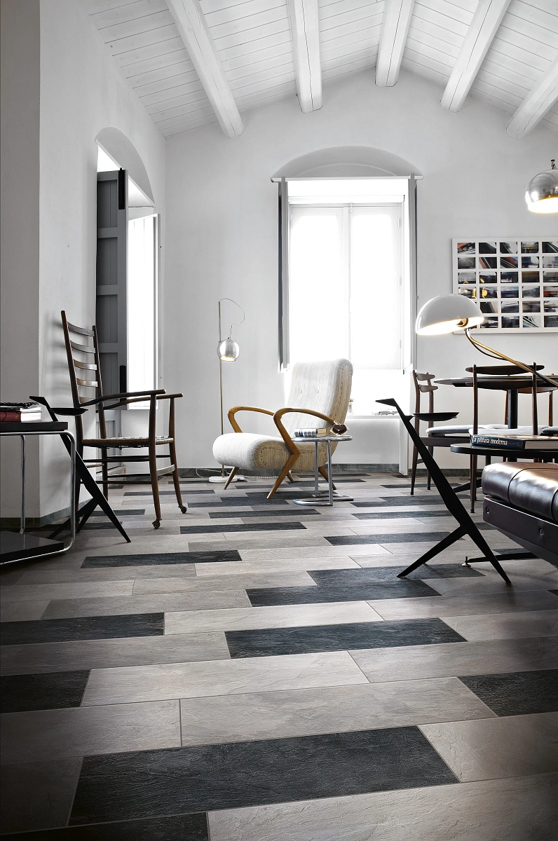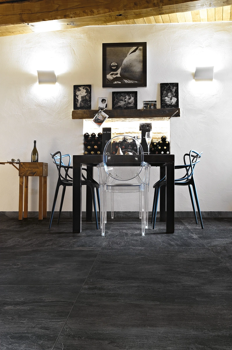 Насыщенный, неровный, живой. Коллекция Ardoise от Rex Ceramiche напоминает тесаный сланец, типичный для Северной Европы, но также довольно распространённый в Центральной Европе, особенно во Франции и Бельгии.