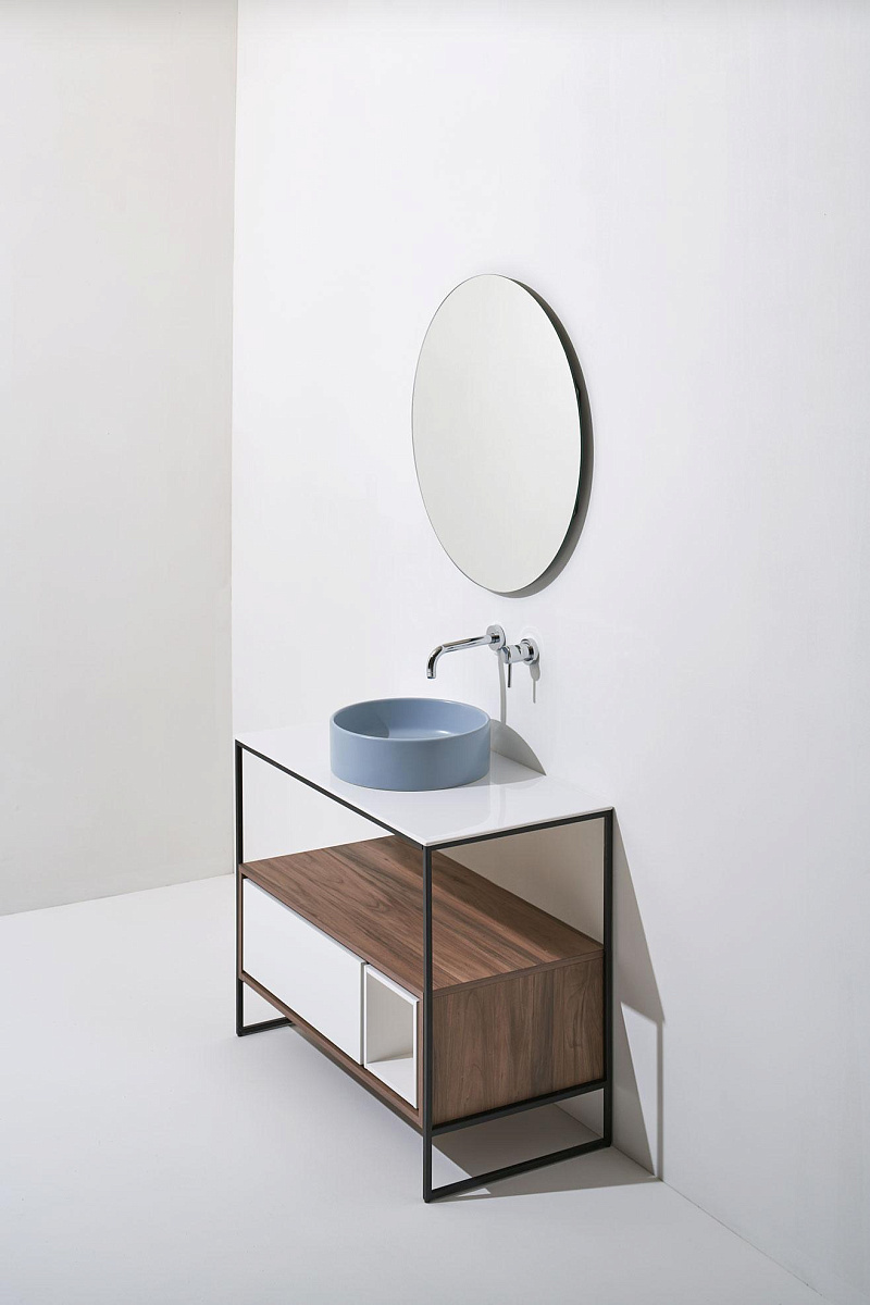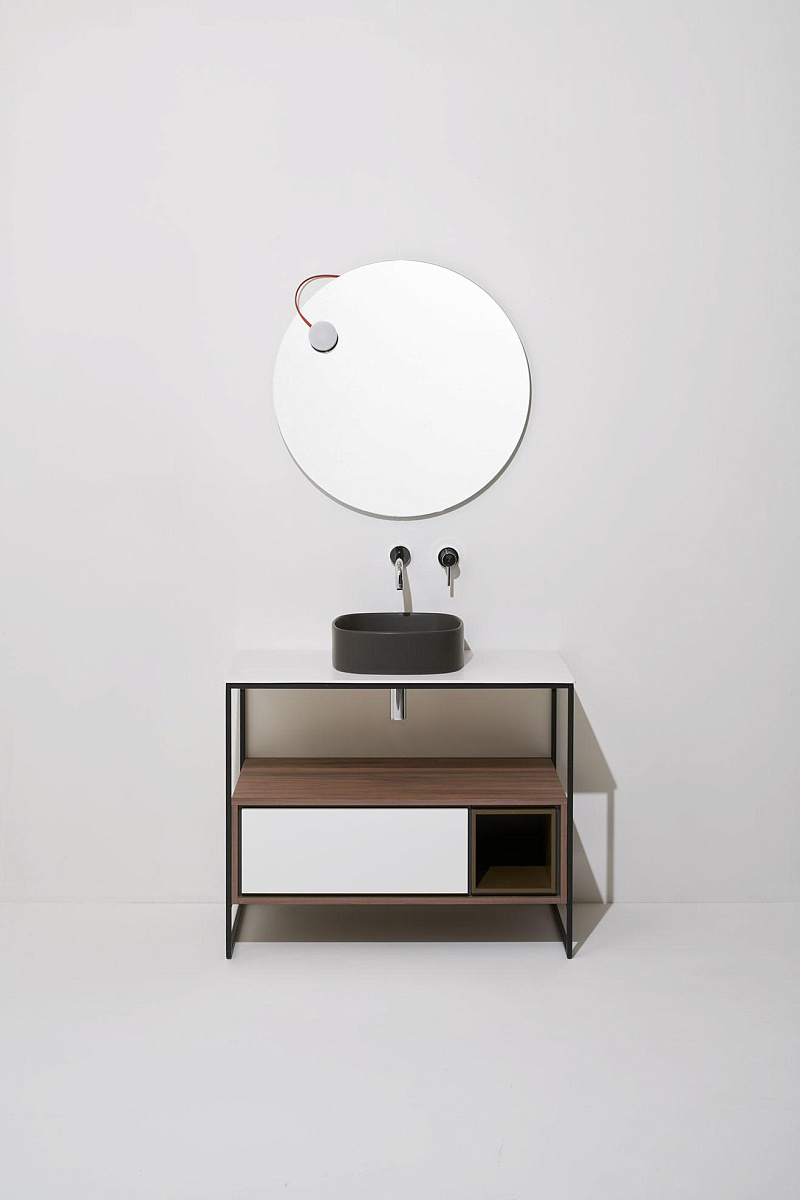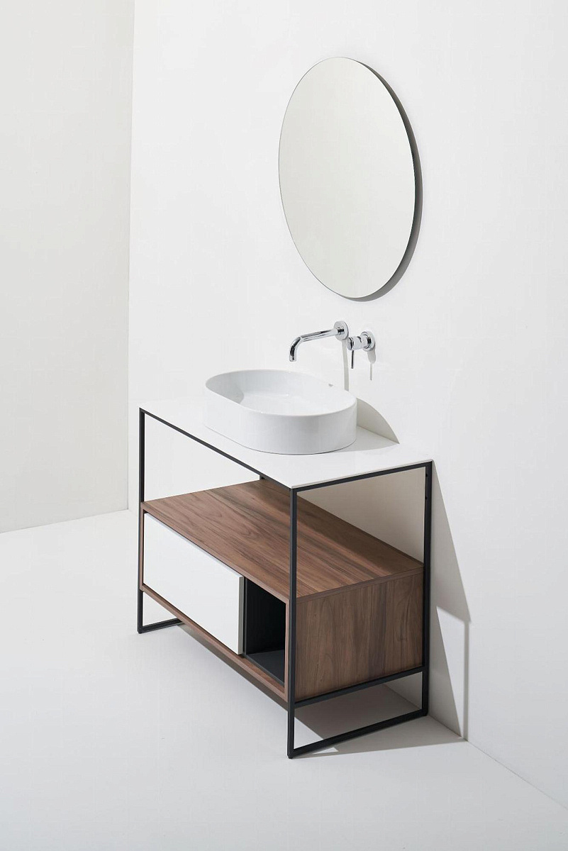 Коллекция Foriu от Simas - это своего рода горизонт, разделяющий проект мебели на две части, который имеет в железе конструкций и в дереве ящиков другие используемые материалы.