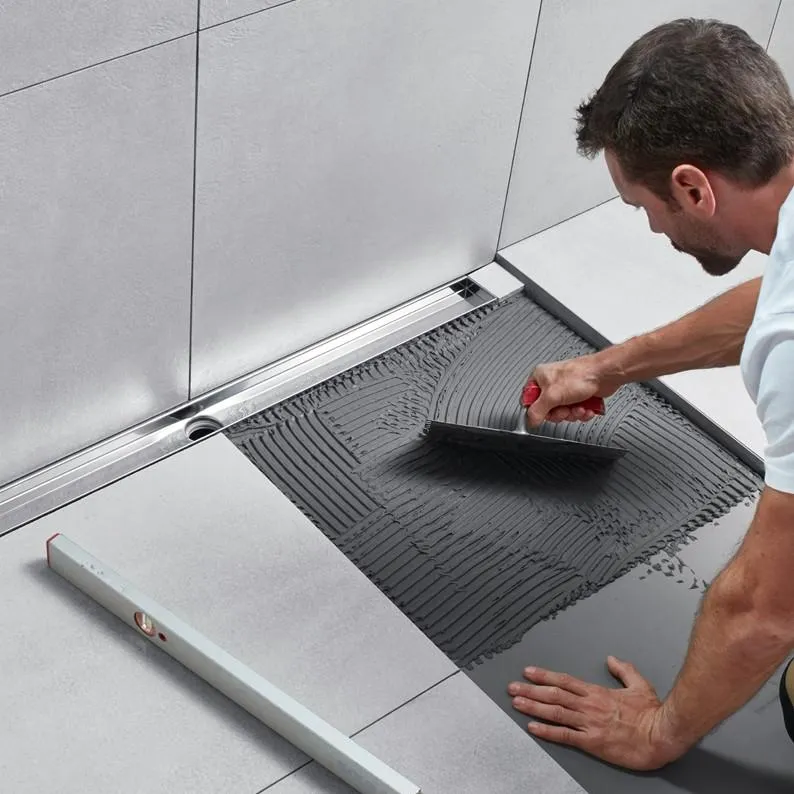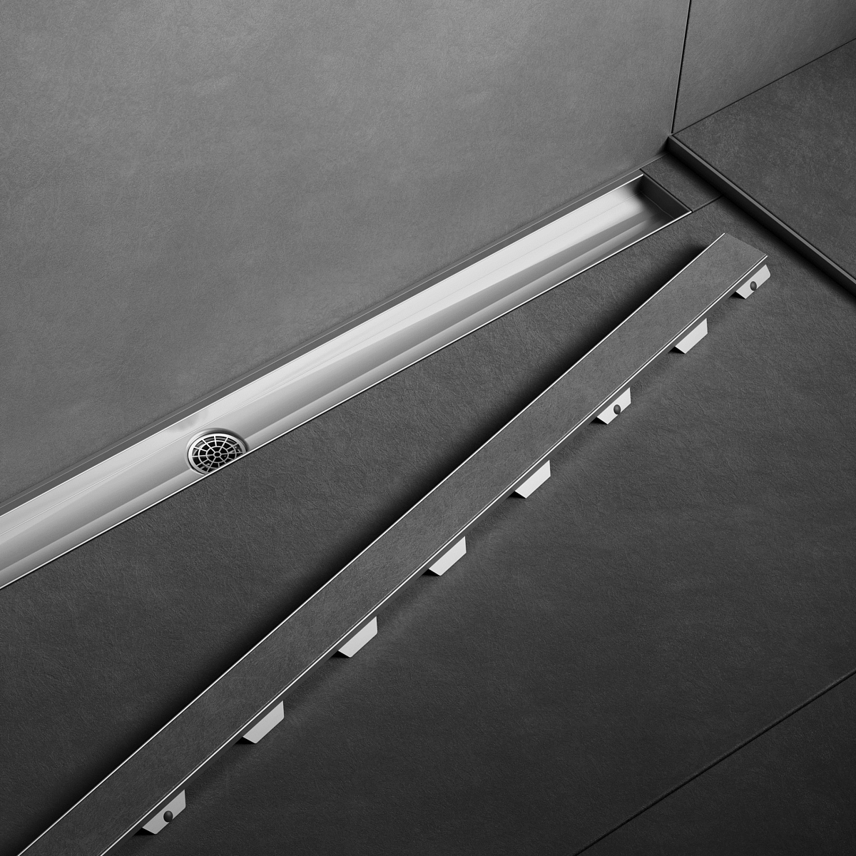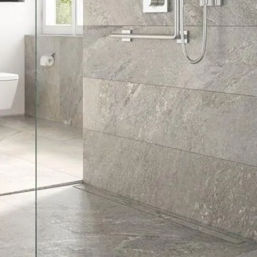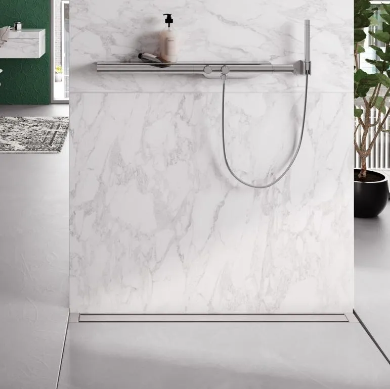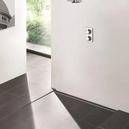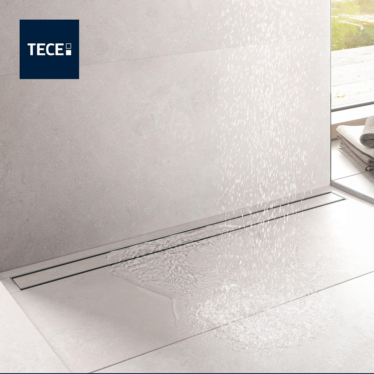 Дренажные каналы для душевой коллекции Tecedrainline от Tece избавляют ванную комнату от мешающих преград, таких как поддоны для душевой и кабины, и позволяют создать однородный дизайн пола.