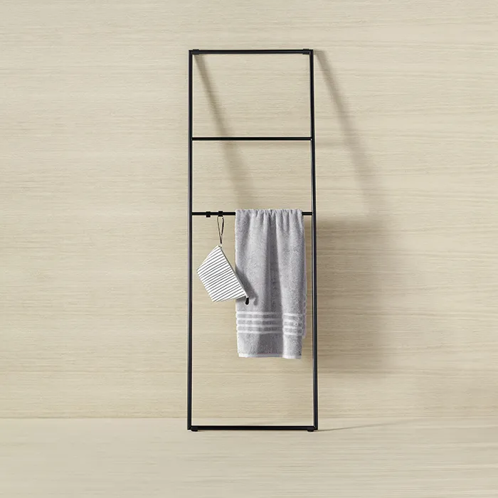 Burgbad COCO Стеллаж для полотенец 600х20х1800мм, 2 поперечины, 2 крючка, цвет черный