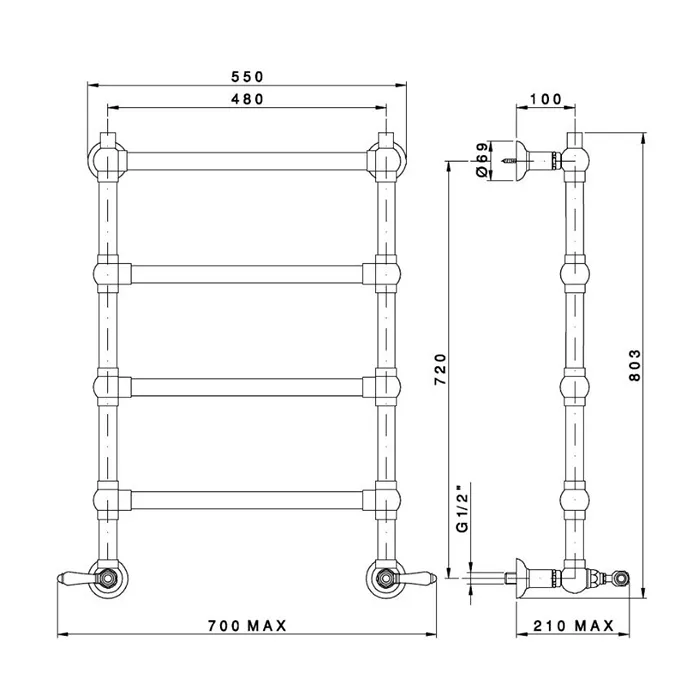 Полотенцесушитель водяной Nicolazzi El Capitan 550(700)х803 мм., черный матовый (спец.цена со склада) 5528CLNEM69