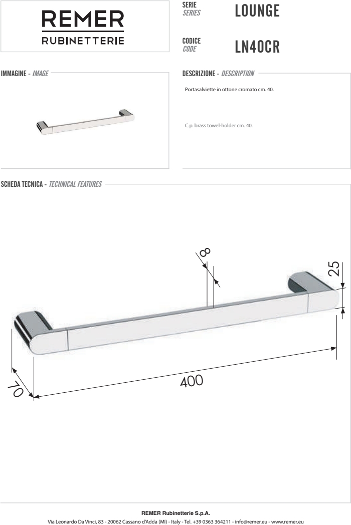 Полотенцедержатель Remer Lounge сталь (XV) LN40XV Полотенцедержатель Remer Lounge сталь (XV) LN40XV