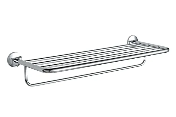 Полка для полотенец серии MONACO выполнена из хромированной латуни глянцевого цвета. Срок службы от 10 лет. Полка также имеет дополнительное вешало, которое можно использовать для халатов или также повесить мокрые полотенца. Поскольку полка выполнена из латуни она будет устойчива к коррозии и ржавчине, а также вы не найдете на ней следов окисления или извести, которые иногда появляются на некоторых аксессуарах для ванн, которые просто покрыты краской. В комплекте с полкой для полотенец предоставляется монтажный набор, который состоит из 2 креплений и 4 винтов.