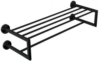 Полка для полотенец с вешалом NIZA черная 16854.BK. Выполнена из нержавеющей стали AISI 304. Подходит для мест с большой проходимостью. Мы ремендуем проводить регулярную чистку изделия, для восстановления слоя хрома, это позволит вам продлить срок службы. Крепежи входят в комплект поставки.