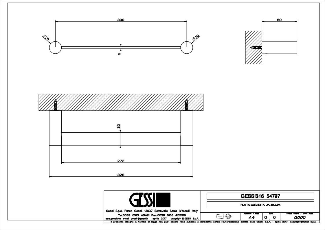 Полотенцедержатель Gessi 54797.708 Copper Brushed PVD