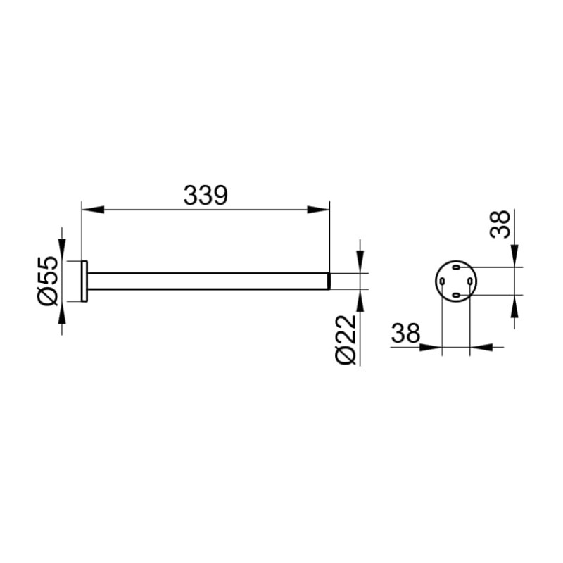 - Габариты (ШхГхВ) мм: 55х340х55, Г?22 мм
