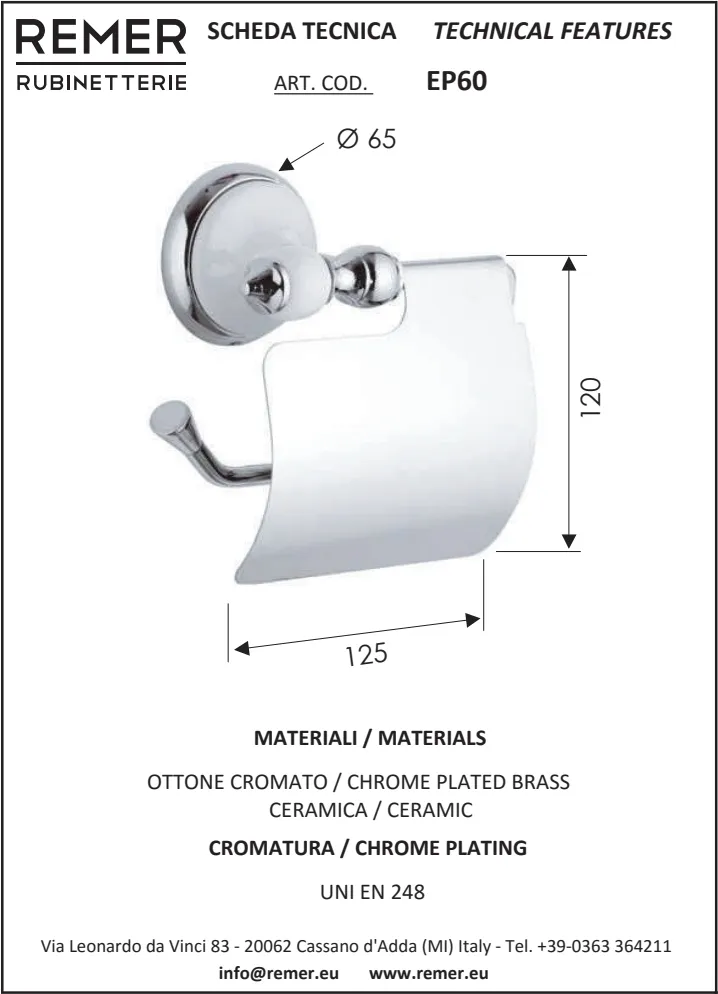 Держатель для туалетной бумаги, из хромированной латуни с крышкой, с держателем из хромированной латуни и керамики
