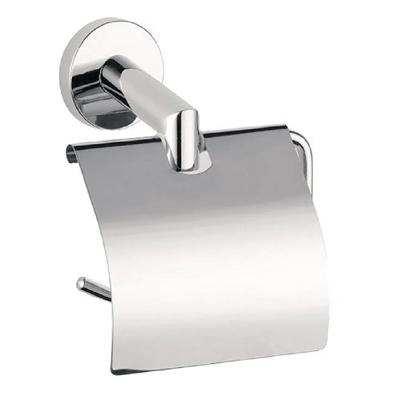 Держатель для туалетной бумаги, из хромированной латуни с крышкой.