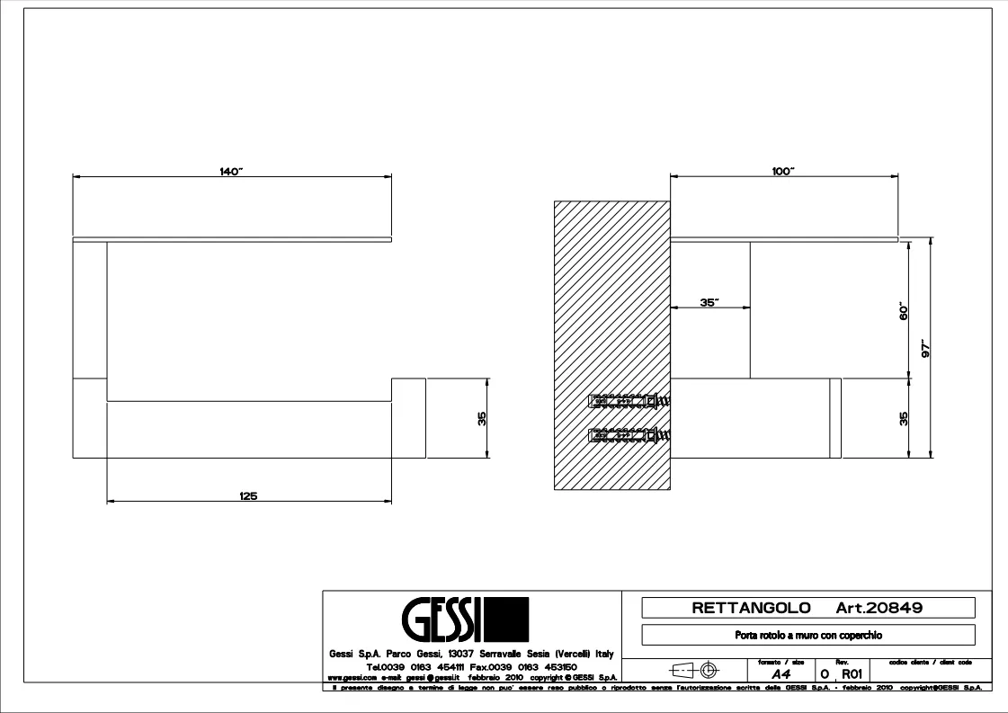 Держатель туалетной бумаги Gessi Rettangolo 20849.149 Finox Brushed Nickel