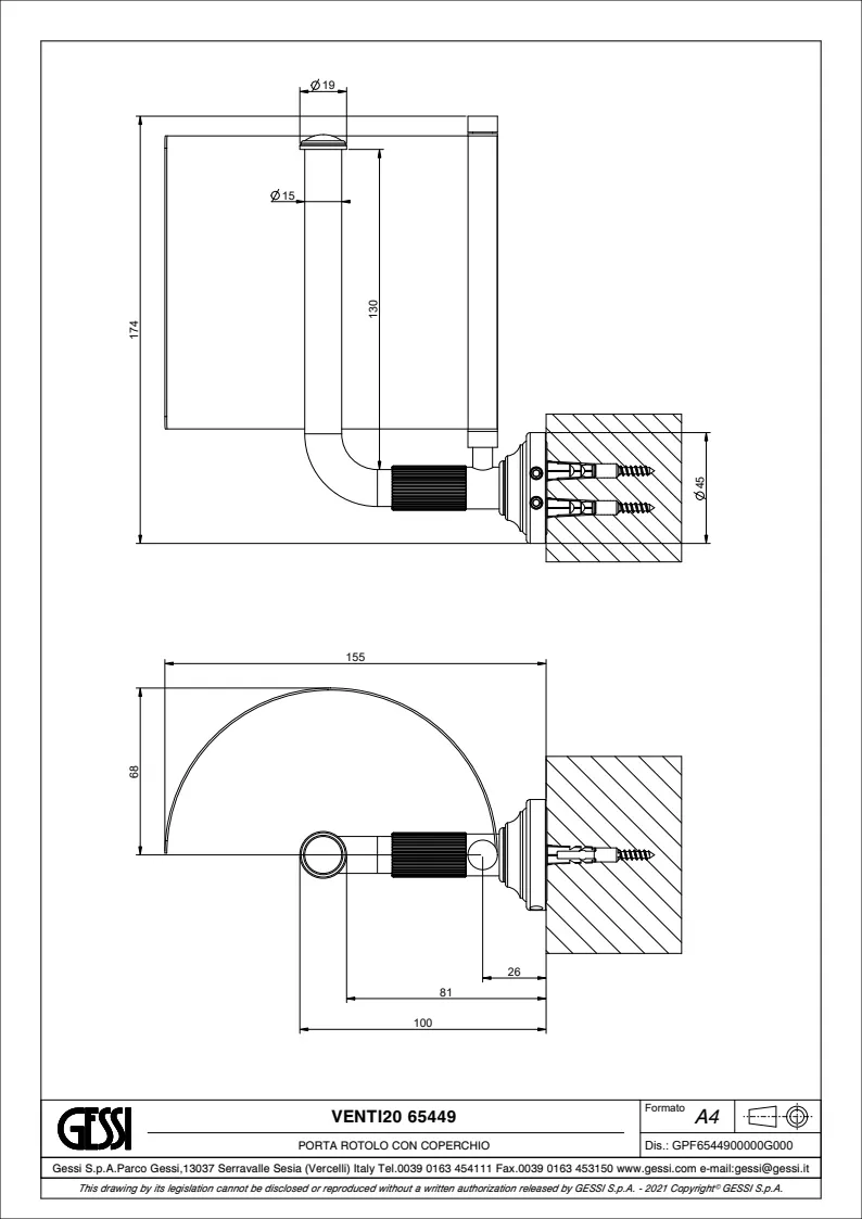 Держатель туалетной бумаги Gessi Venti20 65449.713 Antique Brass