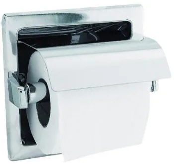 Держатель для рулонов туалетной бумаги из сатинированной нержавеющей стали с крышкой.