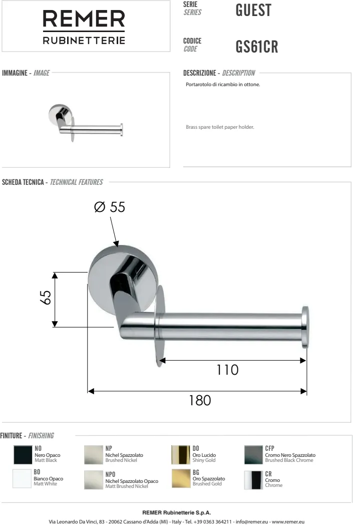 Итальянский бренд Remer Rubinetterie более 50 лет специализируется на выпуске смесителей, душевых систем и аксессуаров для ванной комнаты и кухни. Главная особенность продукции Remer — сочетание классического итальянского дизайна и современных технологий. В отличие от многих конкурентов, компания выпускает полный цикл изделий: от литейного производства латунных корпусов до хромирования и финальной сборки. Это обеспечивает стабильное качество, долговечность и оптимальную цену для европейской сантехники премиум-класса.