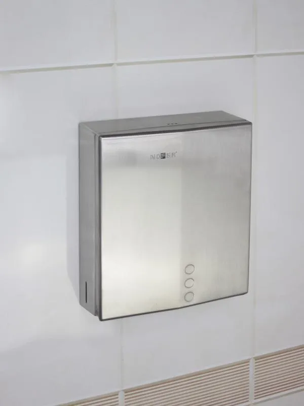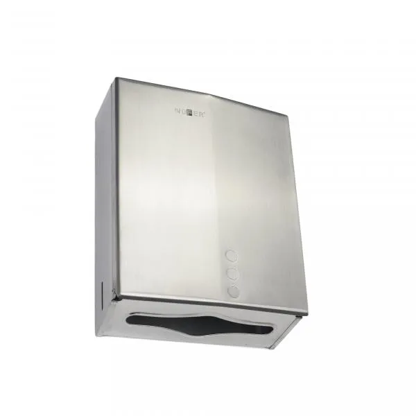 Диспенсер настенный для бумажных полотенец . Применять диспенсер можно совместно с любой бумагой, любой ширины и любого типа сложения. Диспенсер имеет универсальный ключ, который подходит к держателю для рулонной туалетной бумаги, диспенсерам для жидкого мыла серии Evo. Корпус диспенсера сделан из нержавеющей стали AISI 304 матового цвета. Толщина корпуса составляет 1,2 мм, что надежно защищает этот диспенсер от любых попыток вандализма. Также в данном устройстве реализована новая модель замков, которая не имеет поворотного механизма.