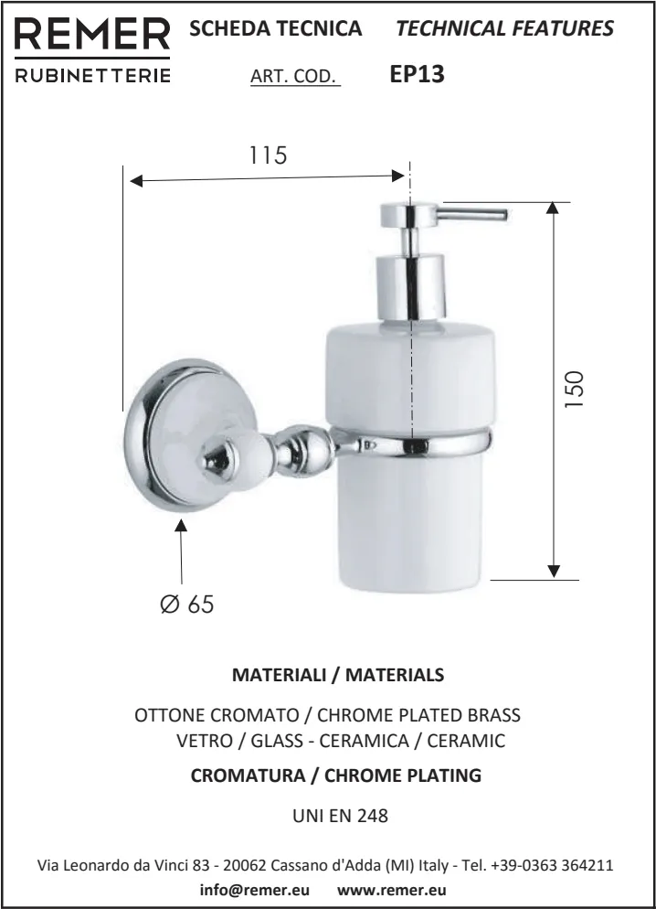 Диспенсер длЯ жидкостей из керамики с держателем из хромированной латуни и керамики