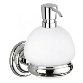 Дозатор для жидкого мыла Keuco Astor 02153019000 в комплекте держателем и насосиком, опаловое стекло матовое/хром