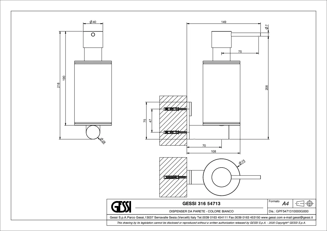 Дозатор для жидкого мыла подвесной для ванной комнаты Gessi 316 54713.239.