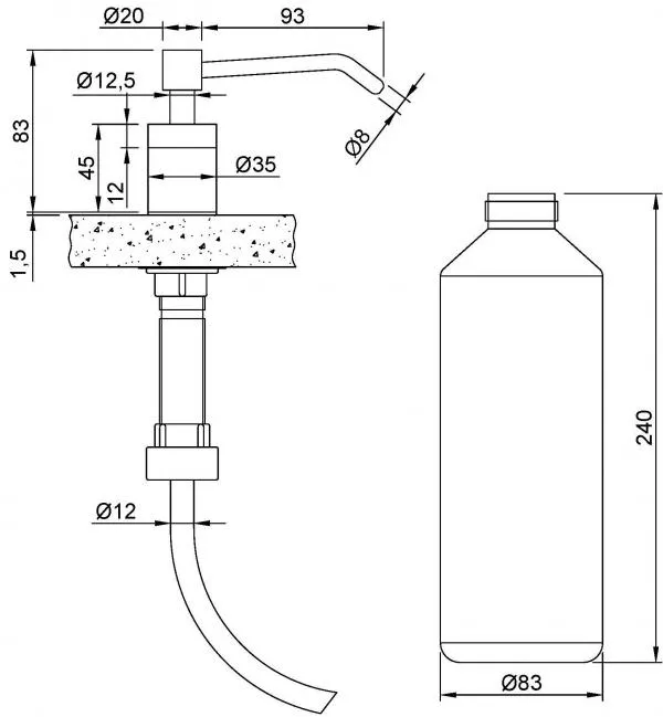 Ручной дозатор жидкого мыла из нержавеющей стали объемом 1000 мл для установки на столешницу или раковину. матовая отделка